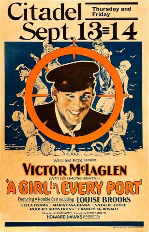 A bracelet charm inscribed with a heart and an anchor sparks conflict and real connection in Howard Hawks's uproarious and implicitly romantic comedy about fellowship on the high seas, made long before better-known Hawks tales of male friendship like Only Angels Have Wings and Rio Bravo. Spike (Victor McLaglen) and Salami (Robert Armstrong), two sailors turned nemeses turned incredibly close friends, share camaraderie and the pursuit of the same ladies, from Coney Island to Rio de Janeiro. Hawks, a maestro at depicting flirtatious, tongue-in-cheek verbal scuffling, wrote the film too, and each intertitle is a delight; conversation feels as rapid-fire here as it does in his talkies. Second-billed Louise Brooks only appears in the third act as Mam'selle Godiva, a circus performer who threatens to turn the duo into a throuple (or tear them apart). She's the quintessential Hawks lady: independent, self-motivated, bites back. When Spike considers giving up skirt-chasing and seafaring to put a ring on it, Salami perceives the potential union as a threat. What was life before that first fist fight? The heart is an anchor, after all.
