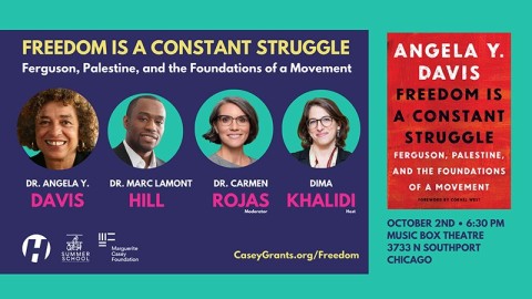Join us for a conversation with Dr. Angela Y. Davis and Dr. Marc Lamont Hill, moderated by Dr. Carmen Rojas, with a welcome and introduction by Dima Khalidi.