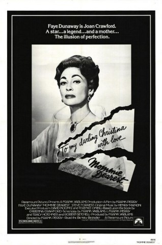 When her adoptive mother Joan Crawford died in 1977, erstwhile actress/author Christina Crawford and her brother Christopher were left out of Joan Crawford's will, "for reasons which are well known to them." Industryites have suggested that it may have been this posthumous act of rejection rather than an alleged lifetime of parental abuse that inspired Christina Crawford to pen her scathing autobiography Mommie Dearest. The 1981 film version of this tome was evidently meant to be taken seriously, but the operatic direction by Frank Perry and the over-the-top portrayal of Joan Crawford by Faye Dunaway (whose makeup is remarkable) has always seemed to inspire loud laughter whenever and where-ever the film is shown. According to the film (and the book that preceded it), Joan Crawford was a licentious, child-beating behemoth, who stalked and postured through life as though it was one of her own pictures-more Strait-jacket than Mildred Pierce.