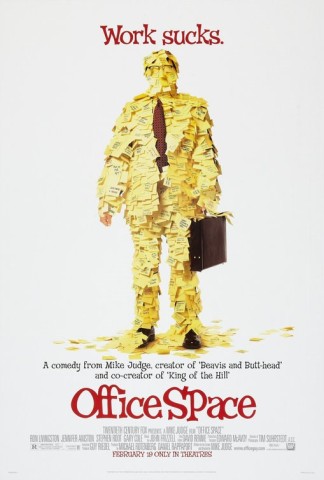 Corporate drone Peter Gibbons (Ron Livingston) hates his soul-killing job at software company Initech. While undergoing hypnotherapy, Peter is left in a blissful state when his therapist dies in the middle of their session. He refuses to work overtime, plays games at his desk and unintentionally charms two consultants into putting him on the management fast-track. When Peter's friends learn they're about to be downsized, they hatch a revenge plot against the company inspired by "Superman III."