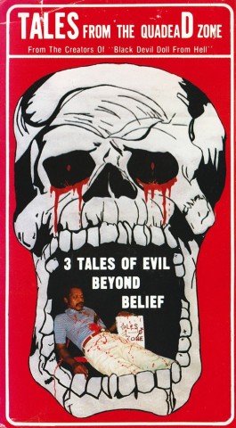 Tales From The Quadead Zone is Chester N. Turner’s second and final dig into self-released SOV sludge. Following up the exhausting-yet-hilarious filth of Black Devil Doll From Hell (1984), Turner and friends honed the skillz, cut the sex, and unwittingly churned out the greatest SOV trash film of all time. No exceptions. Logic, be it godly or mortal, has gone missing during Quadead’s 62 deranged minutes. Therefore, we must be prepared for anything. Don’t knock ‘em for the plastic Casiotone; take heed of the ceramic titty-mug. In the mind of Chester Turner, these things may be the substance of life.
